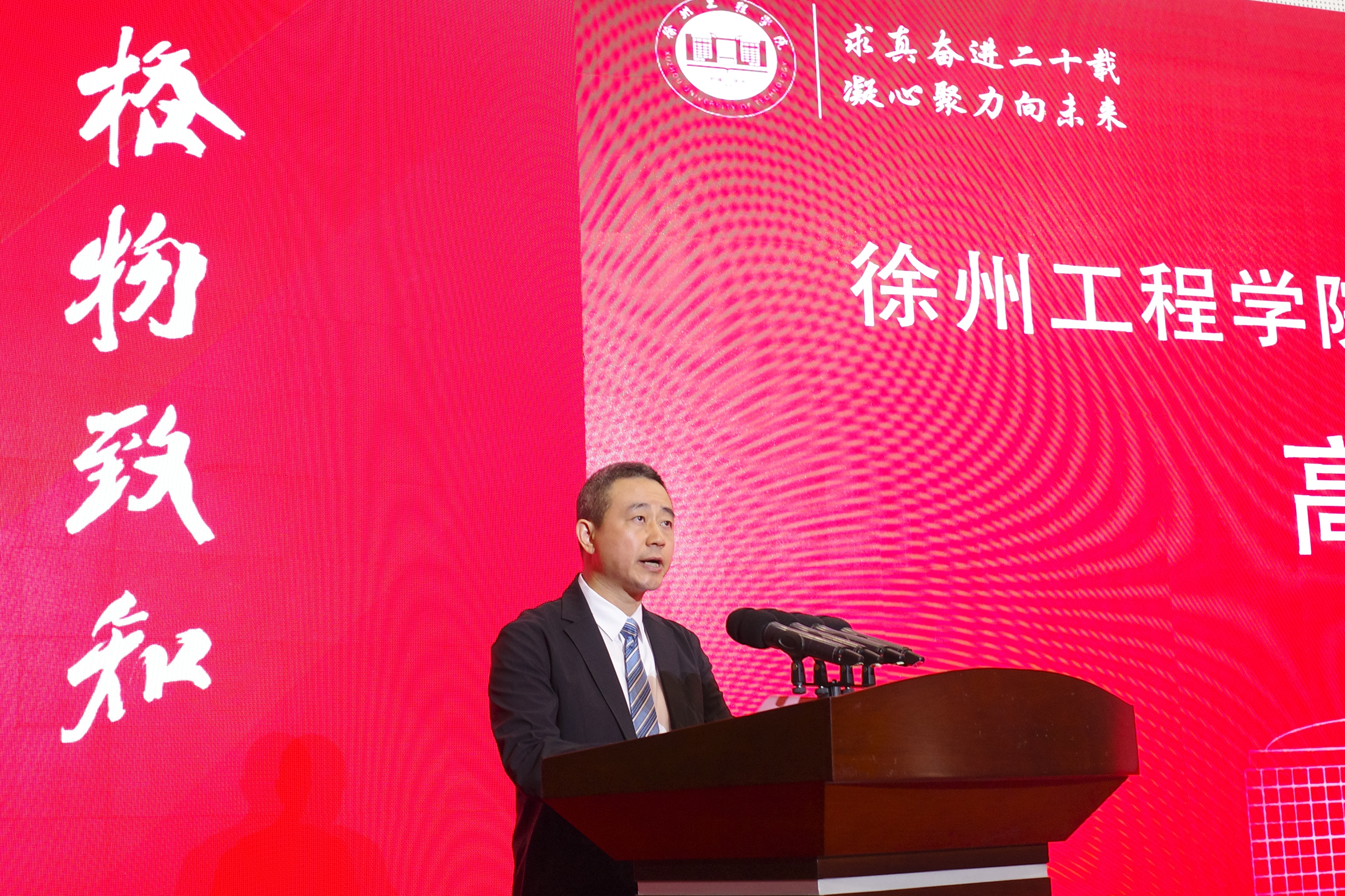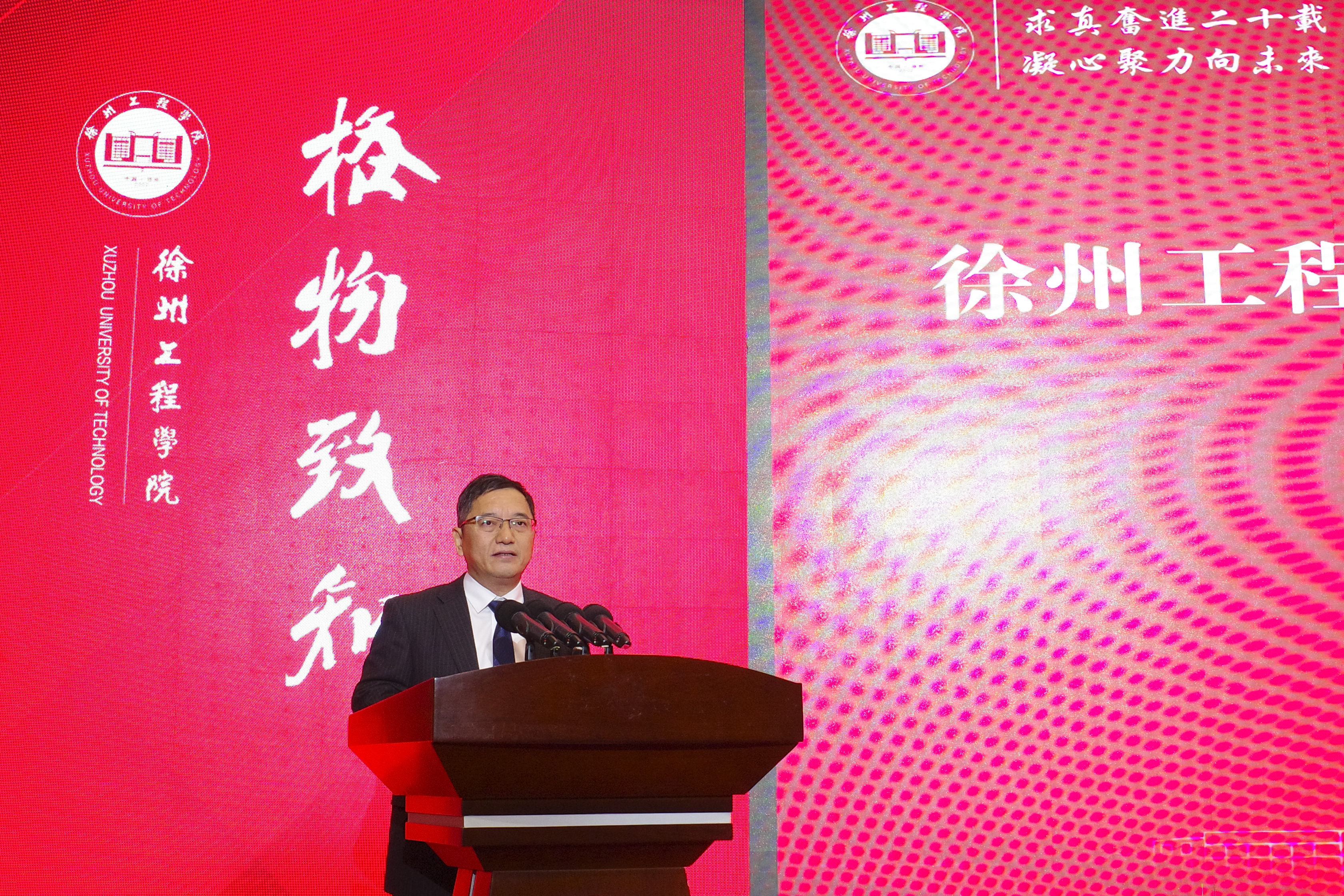 徐州市委常委、宣傳部部長劉偉代表徐州市委、市政府致辭。他指出,徐州工程學(xué)院作為徐州唯一一所市屬本科院校,是徐州市乃至淮海經(jīng)濟(jì)區(qū)內(nèi)科技創(chuàng)新、成果轉(zhuǎn)化、人才培養(yǎng)的重要陣地。學(xué)校始終堅持“立足徐州辦教育、扎根徐州謀發(fā)展”,先后與全市各縣(市、區(qū))以及多家龍頭企業(yè)開展戰(zhàn)略合作,充分展現(xiàn)了市屬高校服務(wù)地方發(fā)展的責(zé)任與擔(dān)當(dāng)。徐州市委、市政府將一如既往地關(guān)心支持學(xué)院發(fā)展,全力為學(xué)校建設(shè)發(fā)展創(chuàng)造良好條件、提供堅強(qiáng)保障,攜手開創(chuàng)校地共生共榮、共贏發(fā)展的美好明天。
